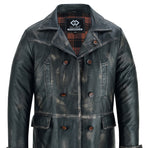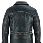 Mens 3/4 Vintage Distressed Eddie Motorcycle Long Leather Jacket
