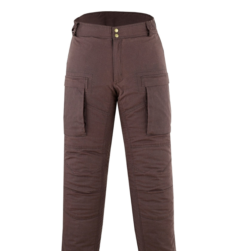 • Waxed Cotton Motorcycle Trousers Waterproof CE Armoured Cargo Riding Pants