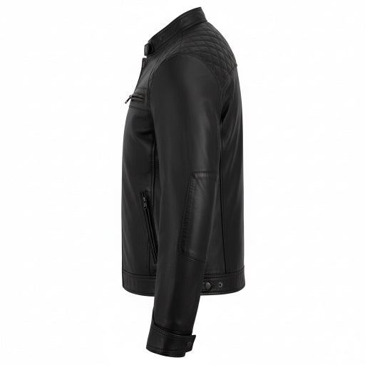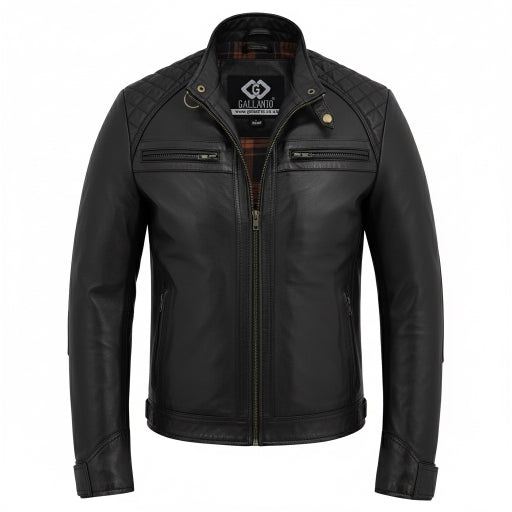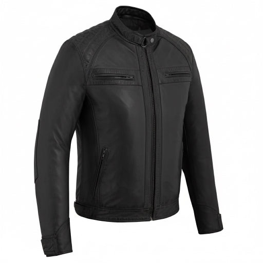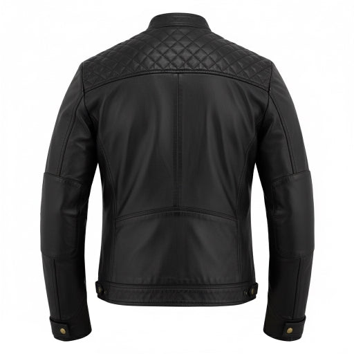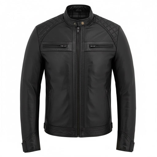 Elevate your ride with this men’s real leather biker jacket, crafted from premium genuine leather for durability, comfort, and timeless style. Featuring a classic racer design with diamond-quilted shoulders, this motorcycle jacket delivers rugged performance with everyday versatility perfect on the road or in the city.