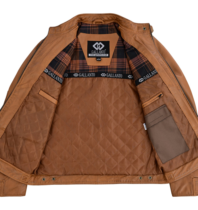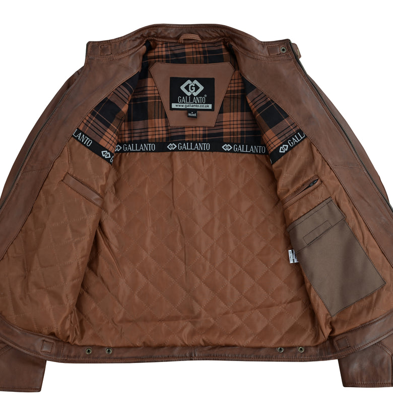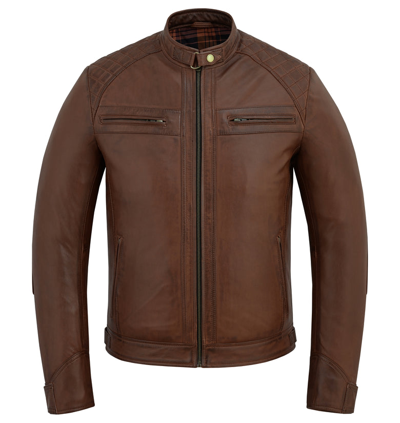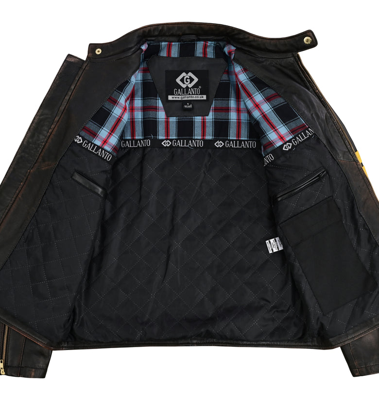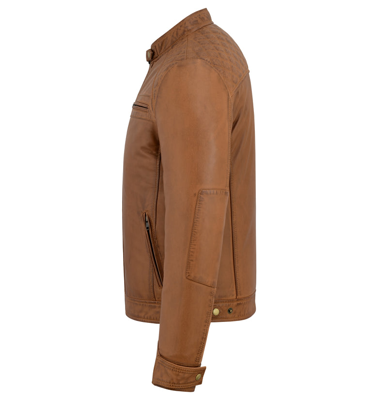 A timeless leather biker jacket built for the road and beyond.