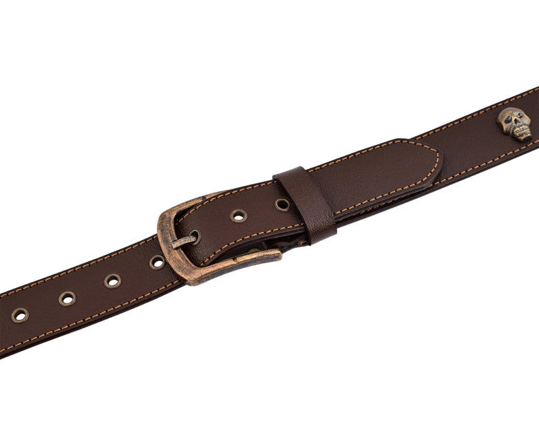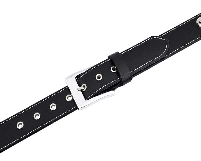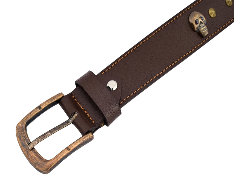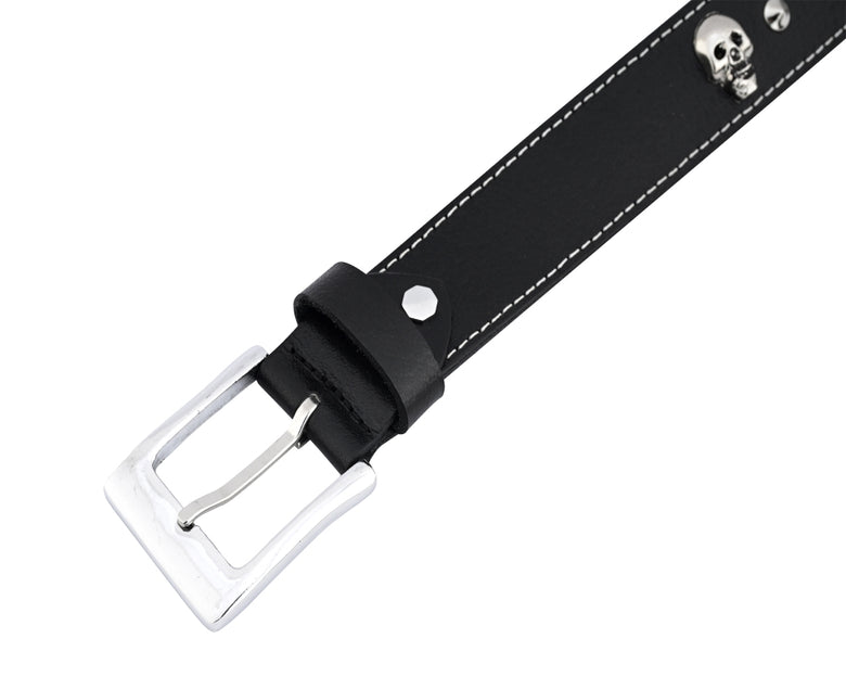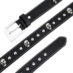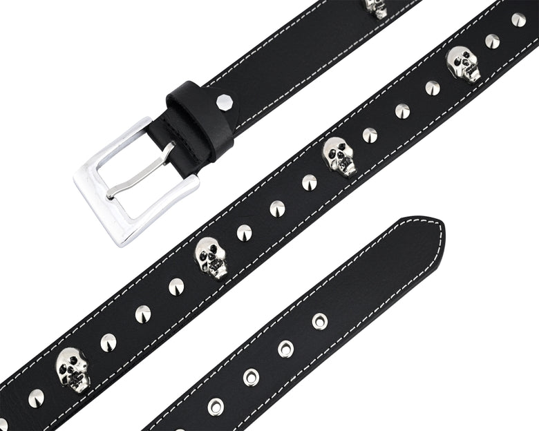 Tags: gothic fashion belt, punk rock belt, pyramid stud belt, skull leather belt, studded leather belt, unisex biker belt