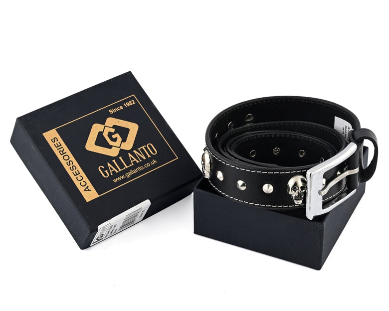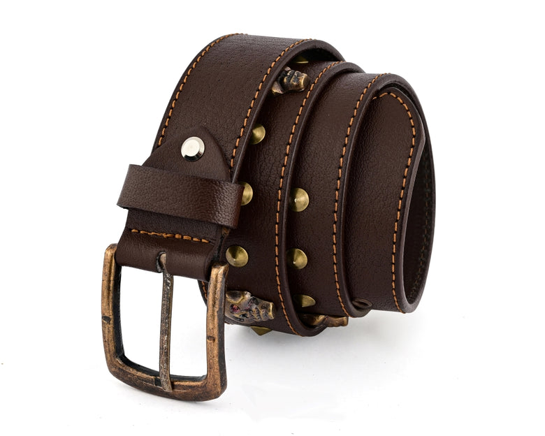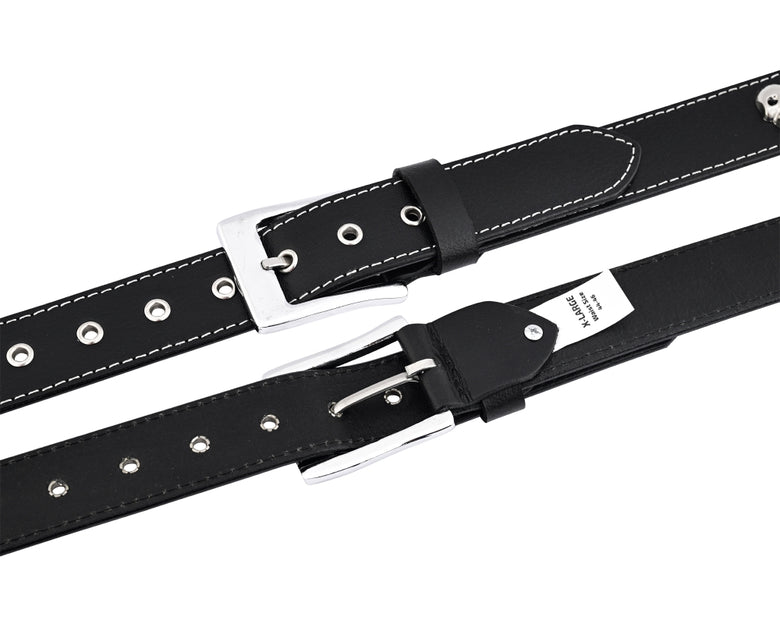 Make a bold fashion statement with this Skull & Pyramid Stud Leather Belt, crafted from premium cowhide leather with striking metal hardware. Designed for punk, rock, and street style lovers, this belt adds instant attitude to any outfit with its skull accents and pyramid studs.