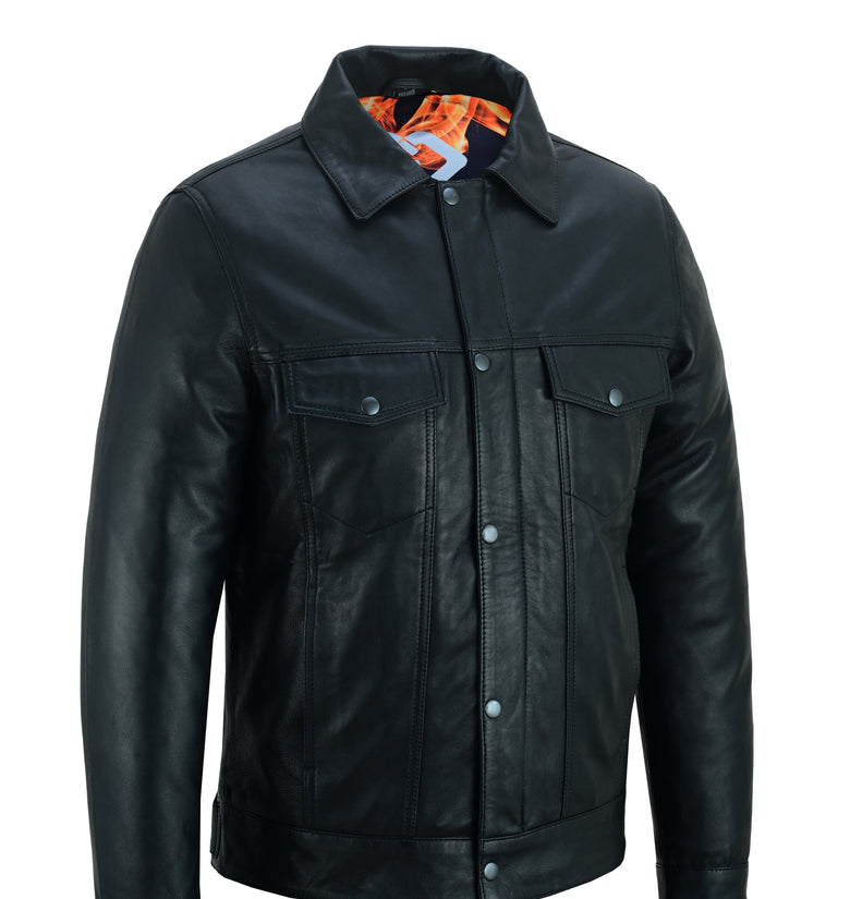 • Classic Trucker Design – Shirt-style collar with zip & snap closure