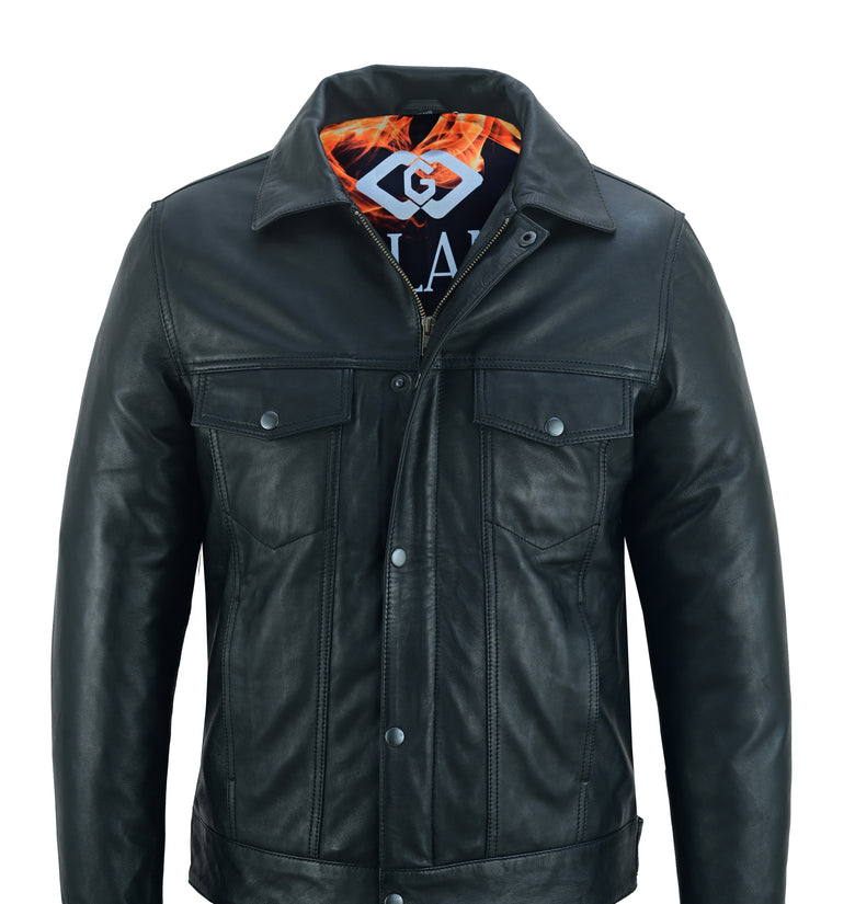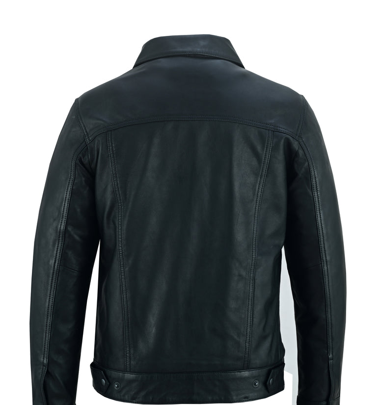 • Timeless Men’s Black Leather Trucker Jacket Premium Sheep Napa