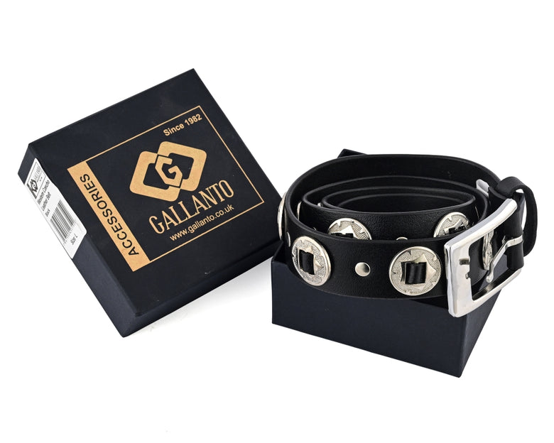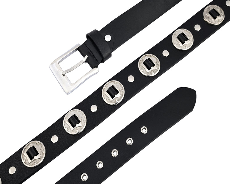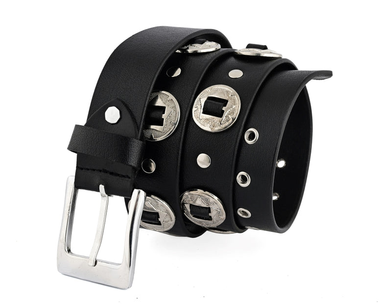 Add rugged character to your wardrobe with this Western concho genuine leather belt, crafted from premium top-grain cowhide for lasting durability and comfort. Featuring intricate side lacing and detailed metal conchos, this belt blends classic cowboy heritage with bold biker attitude — perfect for everyday wear or statement styling.